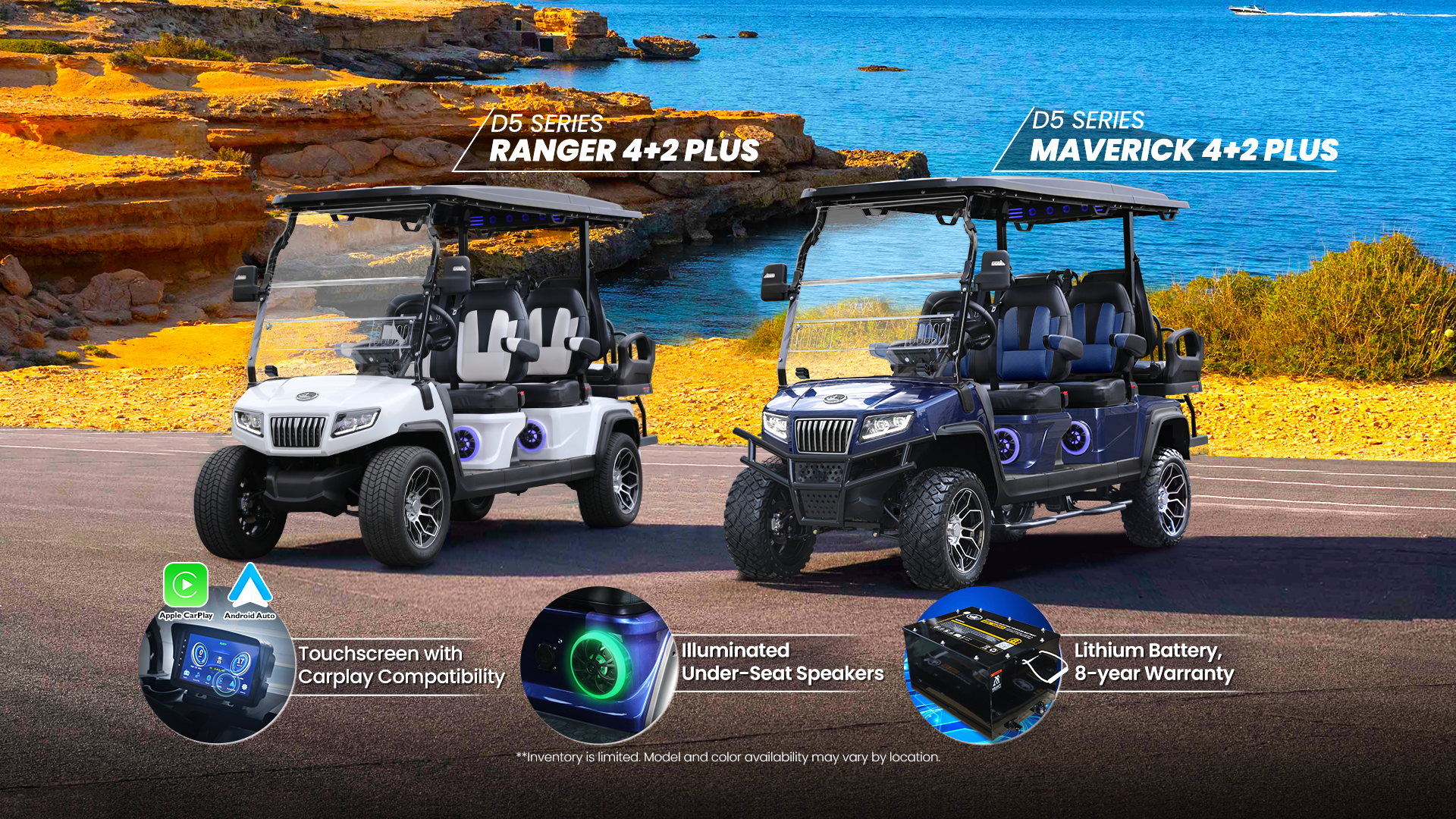 The D5 Ranger is part of Evolution’s flagship D5 lineup—designed to offer a modern automotive feel rather than a traditional golf cart appearance. It includes: