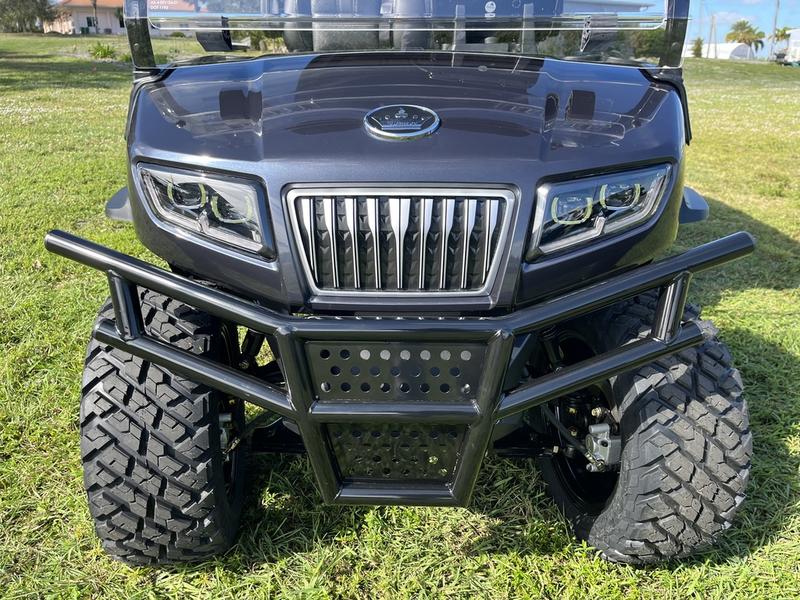 The 2025 Evolution D5 Maverick 4 Plus is a masterclass in rugged design and engineering. Finished in a modern Arctic Gray, this cart combines an aggressive, lifted “beast” aesthetic with the innovative comfort of four forward-facing seats. It’s engineered for the enthusiast who demands both robust performance and the latest technology, ensuring every adventure is a connected, first-class experience.